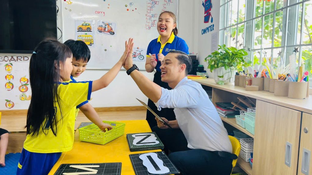 Chương trình học 100% bằng tiếng Anh (ngoại trừ môn tiếng Việt) được giảng dạy bởi đội ngũ giáo viên bản xứ và Việt Nam vững chuyên môn, kinh nghiệm trong giáo dục trẻ em.